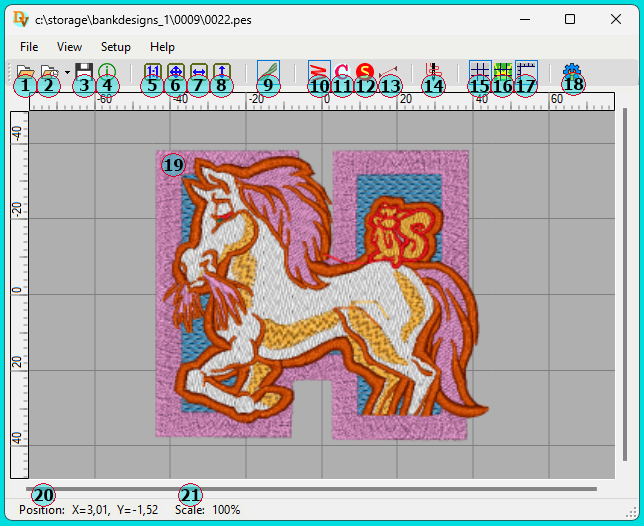 - Відображення властивостей дизайну, включаючи час виконання вишивки